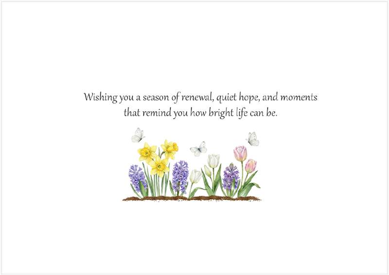 The verse inside this card readsWishing you a season of renewal, quiet hope, and momentsthat remind you how bright life can be.